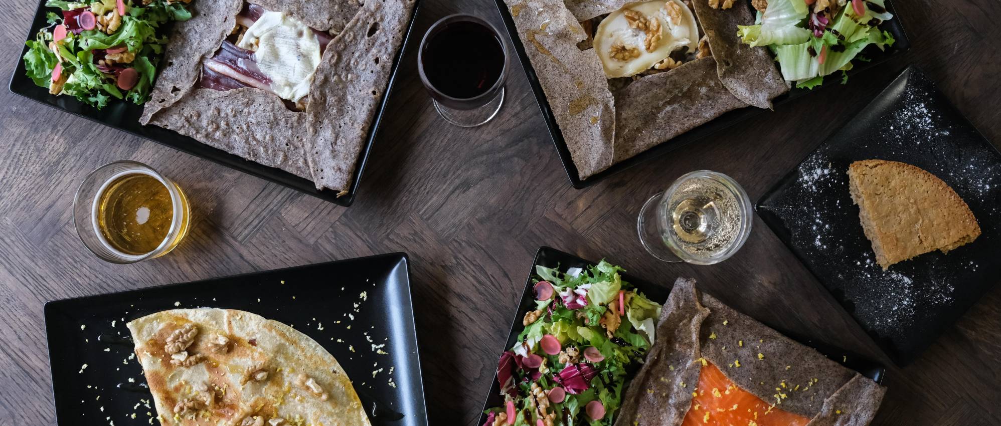Nos crêpes ne s’apparentent pas aux crêpes bretonnes traditionnelles, mais plutôt aux bourriols qui étaient servies au XIXème siècle dans la région aux journaliers au temps des moissons. Elles sont nourrissantes : chaque crêpe représente un plat à elle seule.
